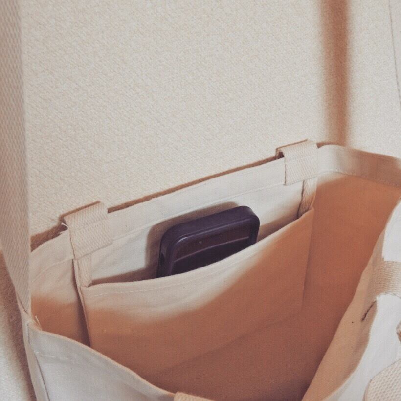 肩にかけてもいいし、手持ち用の紐も付いてるのでトートバッグとして使っても大丈夫です。